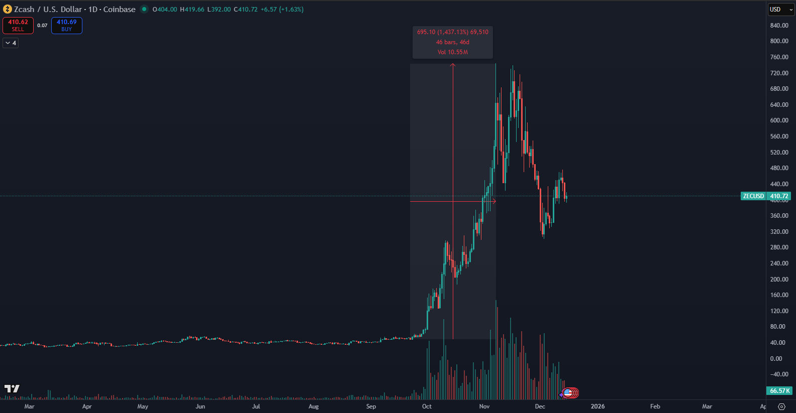 Príklad, že aj známa kryptomena dokáže stúpnuť o 1 000 %. Zdroj: tradingview.com