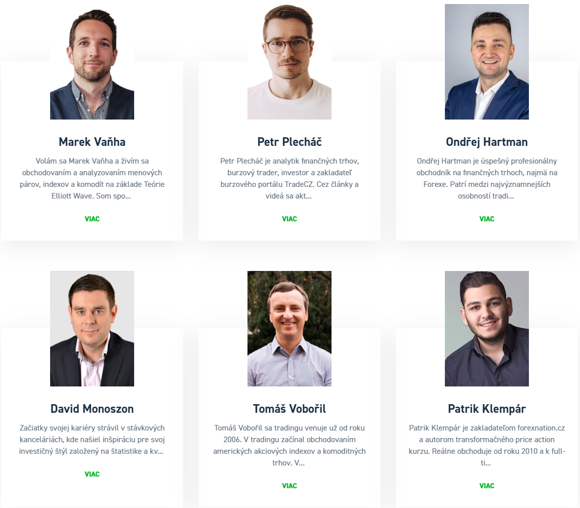 - Petr Plecháč, Ondřej Hartman, Patrik Klempár, Martin Klass – renomovaní obchodníci, investori a mentori.