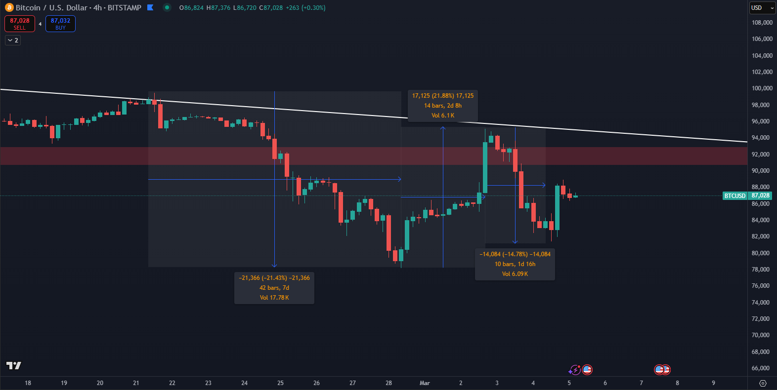 Kryptomeny zaznamenali za posledné dni masívne cenové výkyvy. Posledný februárový týždeň taktiež priniesol extrémnu volatilitu na kryptomenový trh. Bitcoin najprv klesol o 22 % z 100 000 dolárov na 78 000 dolárov. Po oznámení Donalda Trumpa o strategických rezervách BTC a altcoinov nastal prudký rast na 95 000 dolárov, no po dvoch dňoch opäť klesol o 15 % na 81 000 dolárov.