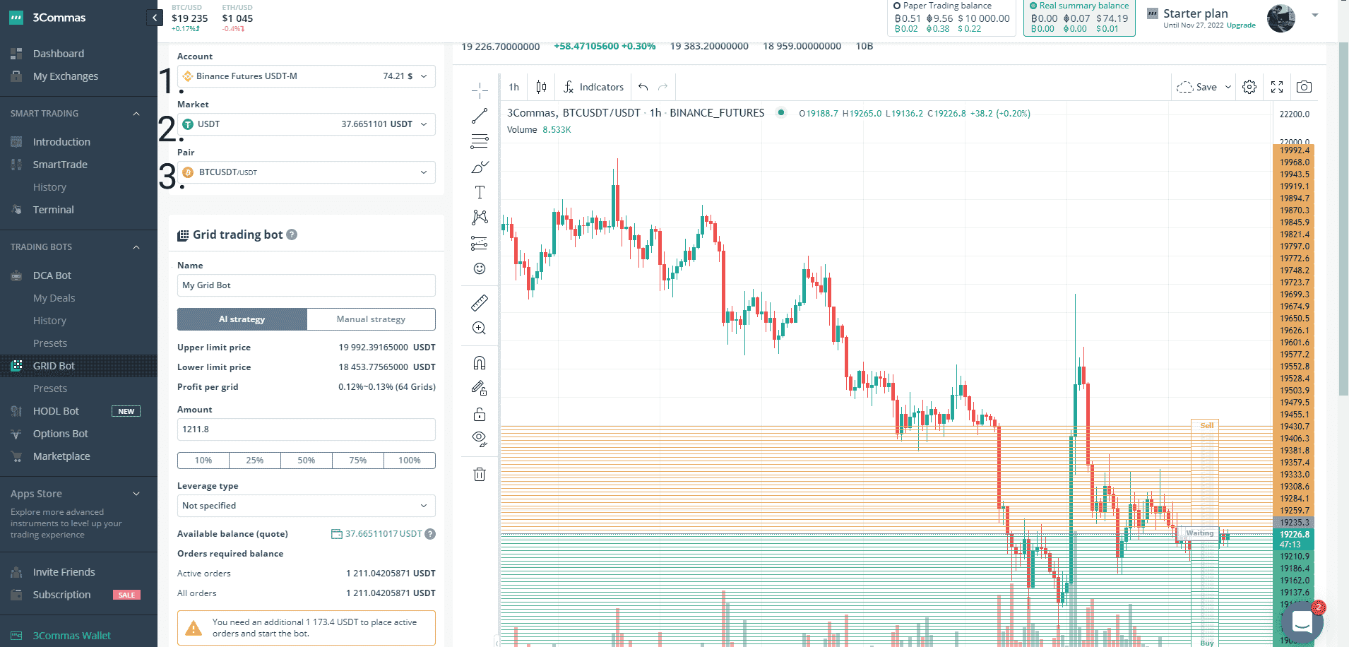 Z praktickej časti sa presúvame na technickú. Sú 2 možnosti, ako obchodovať tento systém. Ručne, alebo cez bota. Najlepšie je celý proces automatizovať, pretože sledovať každý deň graf nemusí byť pre každého príjemné. Obzvlášť ak zvolíme skôr agresívnejšie nastavenie na báze väčšieho počtu obchodov. Pre automatizáciu je optimálne si nájsť na internete platformu alebo developera, ktorý nám bota poskytne. Najznámejšia takáto platforma je 3commas, ktorá jedného bota na účet ponúka dokonca úplne zadarmo. V ponuke je viac platených balíkov. Na úvod ale odporúčame ponechať základy, keďže stačí si vytvoriť iba jedného bota. V ostatných platených balíkov v prípade záujmu nájdeme aj ďalšie funkcie ako smart trade a ďalších botov.