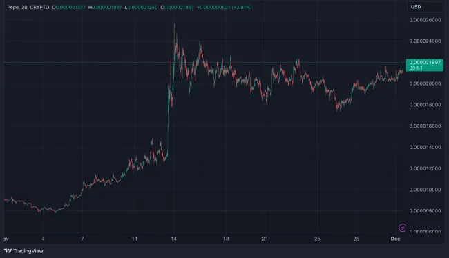Pepe (PEPE) však zaznamenal za posledný mesiac výrazné cenové výkyvy. Zatiaľ čo obchodné objemy Pepe dosiahli osemmesačné maximum, token zaznamenal pokles o 5,37 %, čo zdôrazňuje vlastnú volatilitu Pepe a širšieho trhu s meme coinmi.