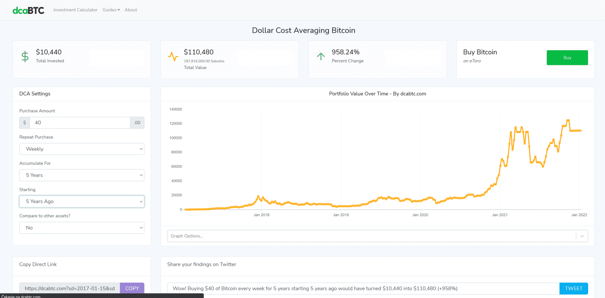 DCA investovanie do Bitcoinu, zdroj: dcabtc.com