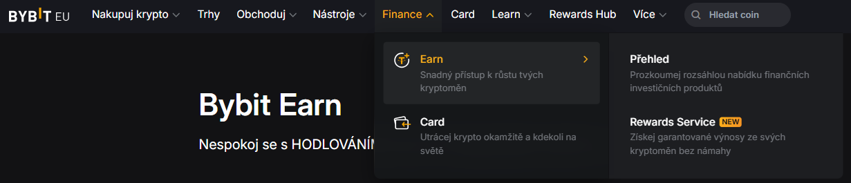 V menu kliknite na Earn, kde uvidíte všetky dostupné produkty. Vyberte si kryptomenu, ktorú chcete zhodnocovať.