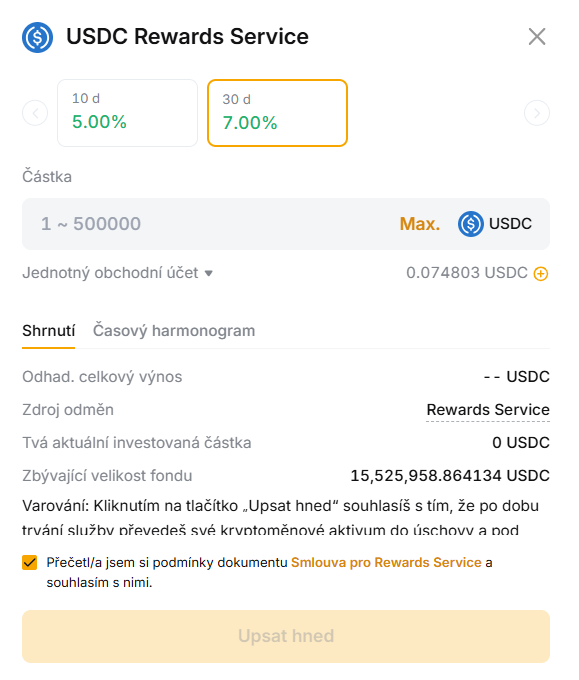 Zvoľte obdobie uzamknutia a potvrďte výšku vkladu. Platforma automaticky spustí staking a Vy začnete získavať pravidelné odmeny bez ďalšej práce.