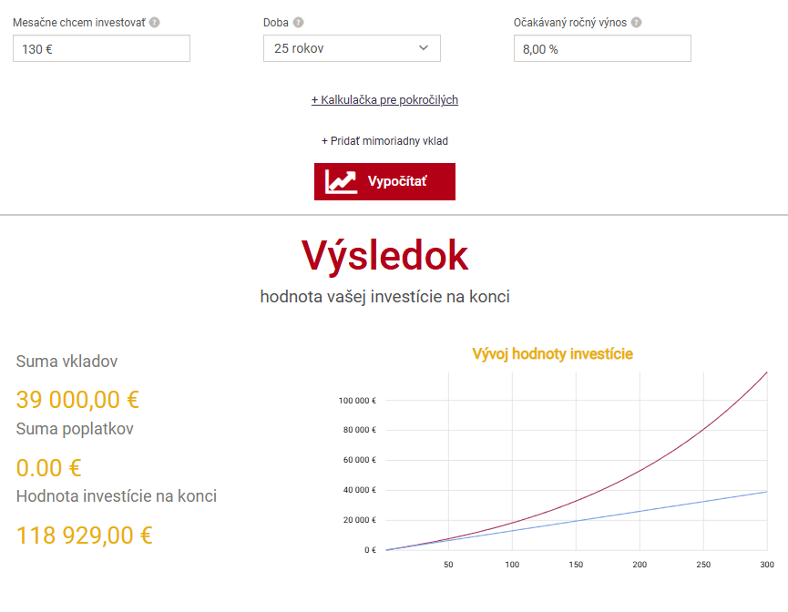Otázkou však zostáva, ako takúto sumu nasporiť. Pri pravidelnej mesačnej investícii 130 eur po dobu 25 rokov s očakávaným ročným výnosom 8 % sa dá cieľ dosiahnuť, hoci ide o dlhodobý proces. Napriek tomu je tento prístup považovaný za jednu z najefektívnejších foriem budovania pasívneho príjmu pre väčšinu ľudí. Systematické investovanie, reinvestovanie výnosov a trpezlivosť sú kľúčom k vytvoreniu finančnej slobody a stabilného mesačného príjmu v budúcnosti.