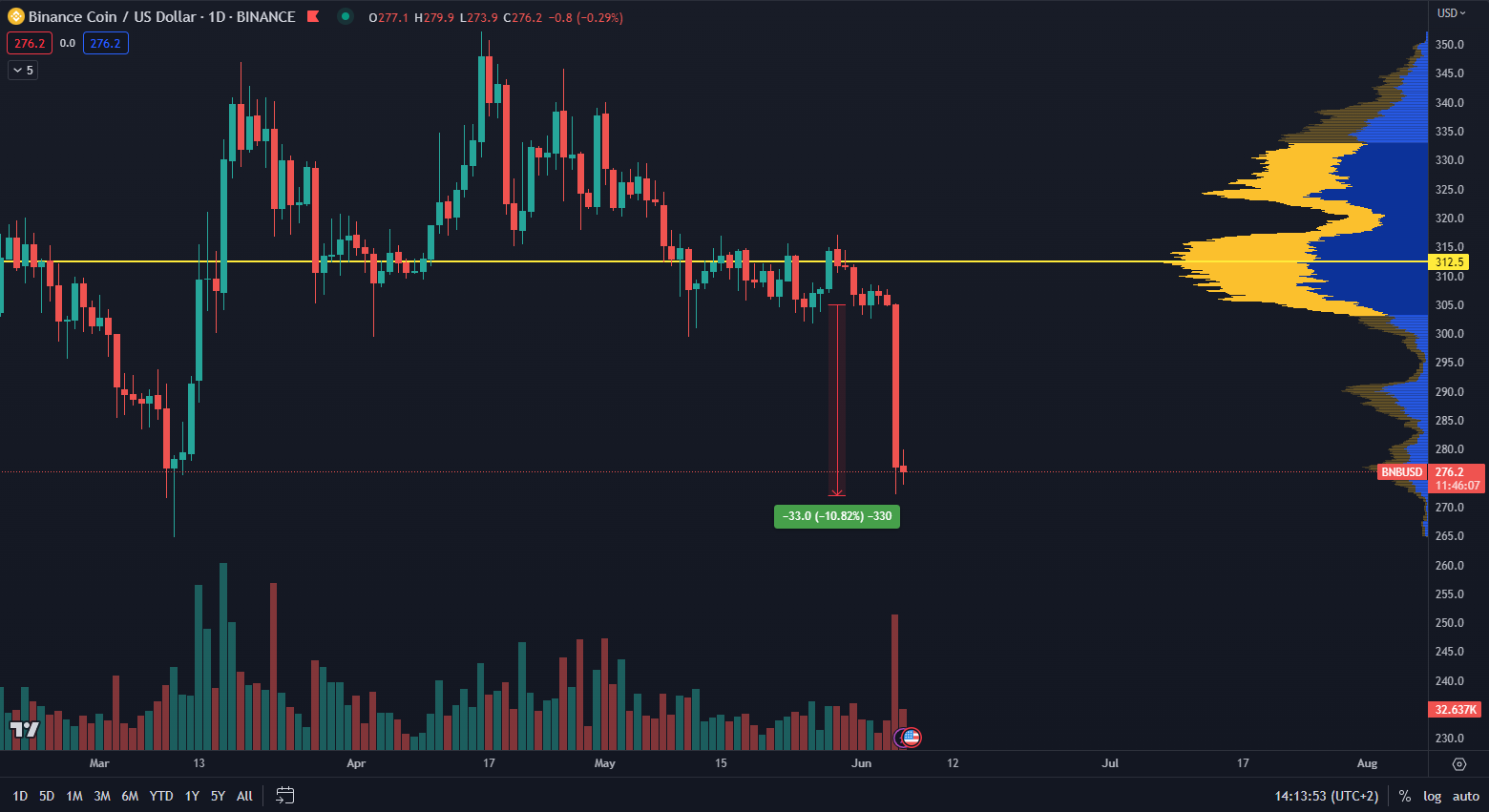 Ako vidíme na grafe nižšie, token burzy binance coin (BNB) podľa údajov z TradingView reagoval masívnym poklesom až 10 % len za 24 hodín. Táto správa ale ani zďaleka nespôsobila iba pád tokenu BNB. Klesal celý trh a spolu s ním aj najväčšie kryptomeny ako bitcoin (-6,00 %) a ethereum (-5,70 %).