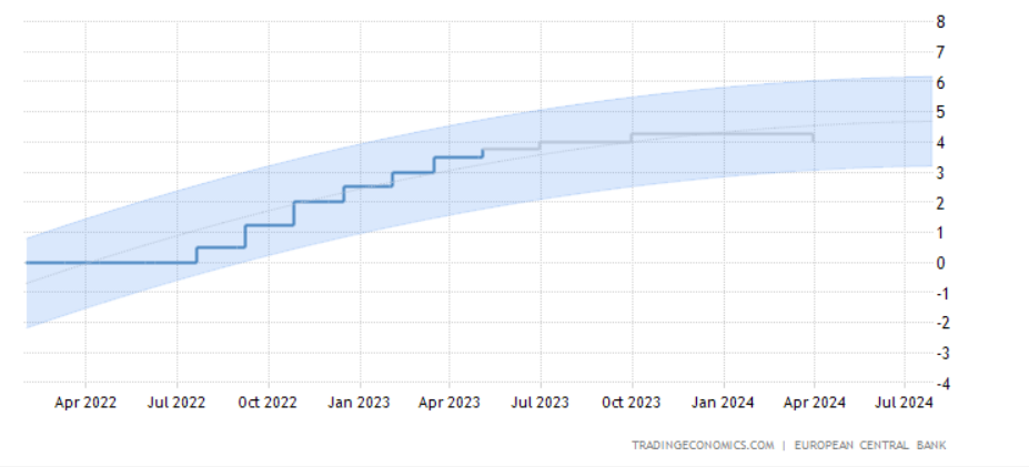 Predpoveď úrokovej sadzby ECB. Zdroj: Tradingeconomics
