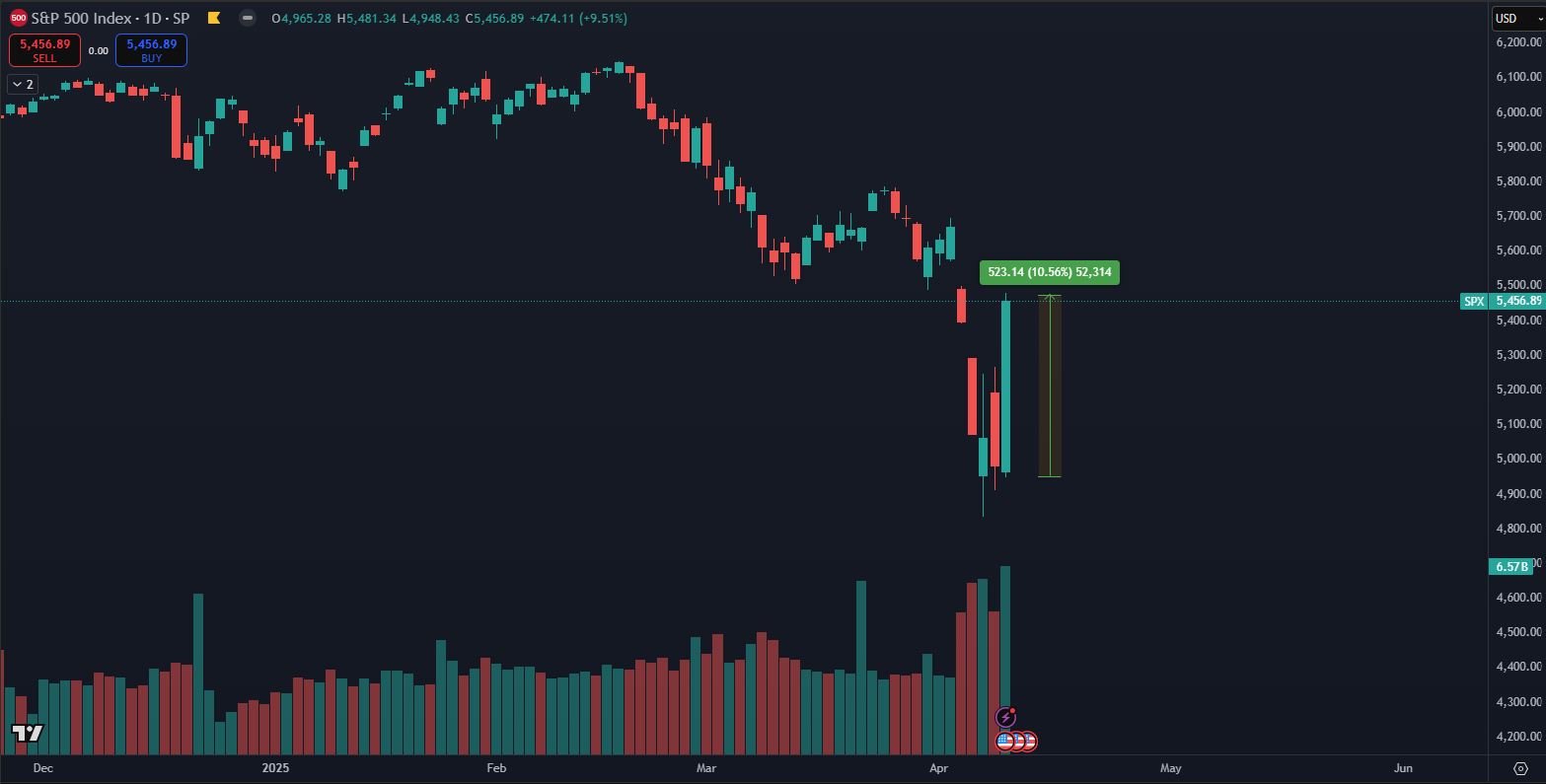 Rozhodnutie zásadne otočilo náladu na trhoch a ukončilo niekoľko dní extrémnej volatility. Dow Jones vzrástol o 9,20 %, S&P 500 o 10,56 % a Nasdaq o 12,40 %. Ide o najväčšie denné zhodnotenie od roku 2001, resp. 2008 v závislosti od indexu. Dokonca hovoríme o jednom z najpozitívnejších denných sviečok v histórii akciového trhu.
