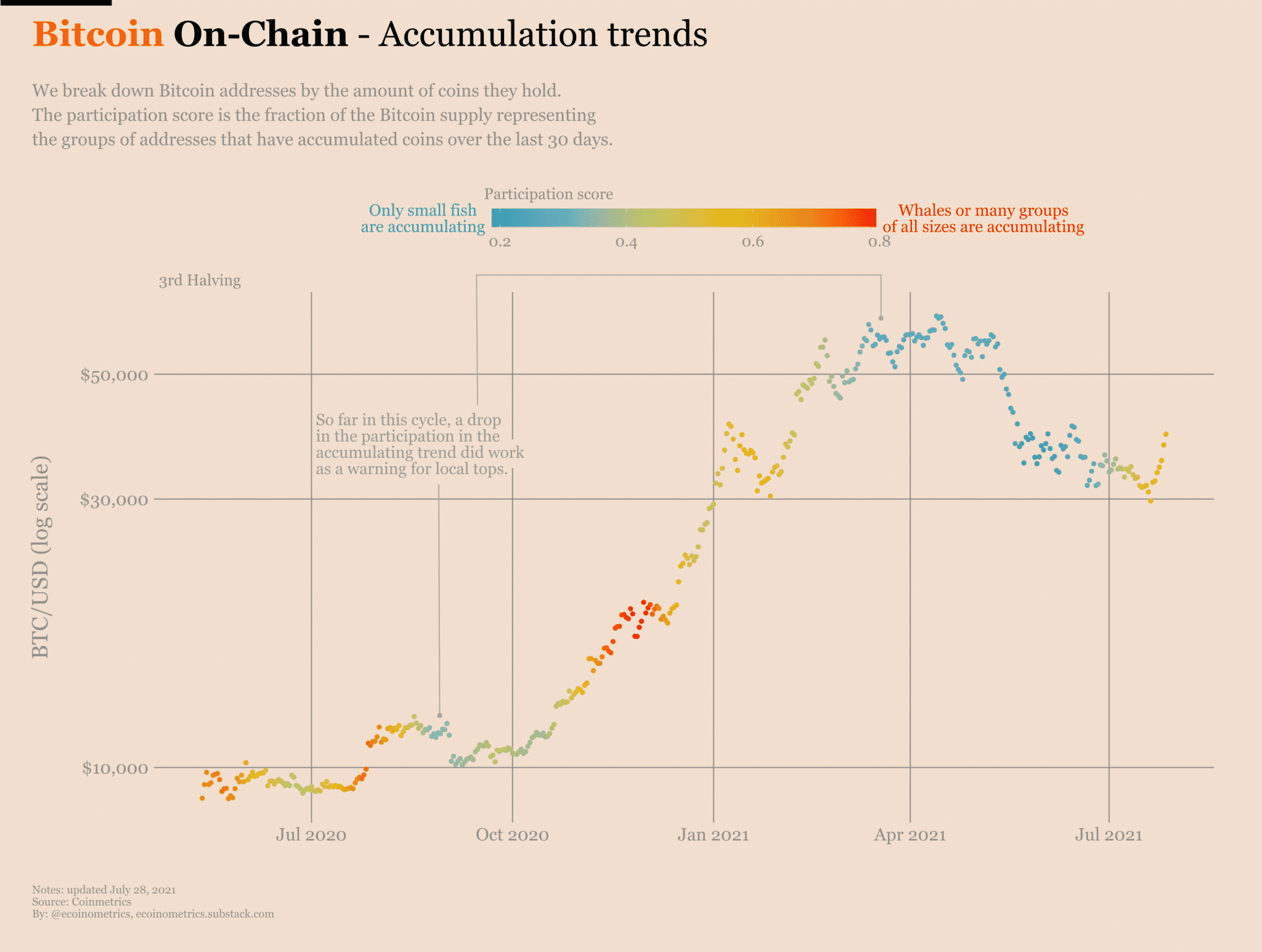 Pred nedávnym odrazom Bitcoinu od supportu na úrovni 30k prišiel s vyjadrením autor zo spoločnosti Ecoinometrics Nick: