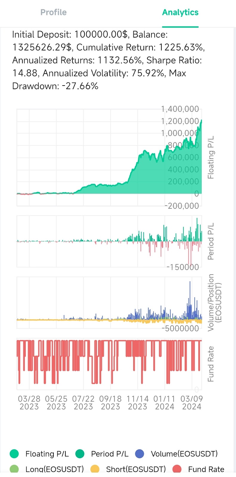 Vysvetlenie obrázku: Môžete si skontrolovať riziko stratégie, výsledky zisku pri rôznych parametroch, aké technické ukazovatele boli použité, atď.