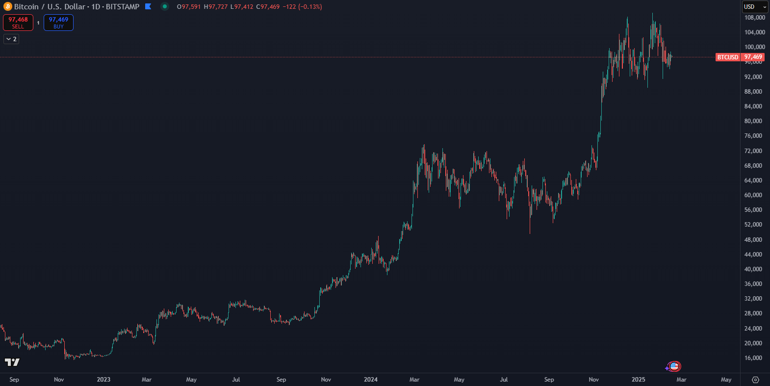 - Bitcoin, jeden z Kiyosakiho najobľúbenejších aktív, zaznamenal od začiatku roka nárast o 4,30 %, pričom sa obchoduje za 97 450 dolárov. Trhové podmienky však neboli ideálne – po oznámení Trumpovej administratívy o clách 1. februára nasledoval prudký prepad rizikových aktív. Zverejnenie neočakávane vysokých ekonomických údajov navyše vyvolalo obavy z inflácie, čo viedlo k výrazným korekciám na kryptotrhu.