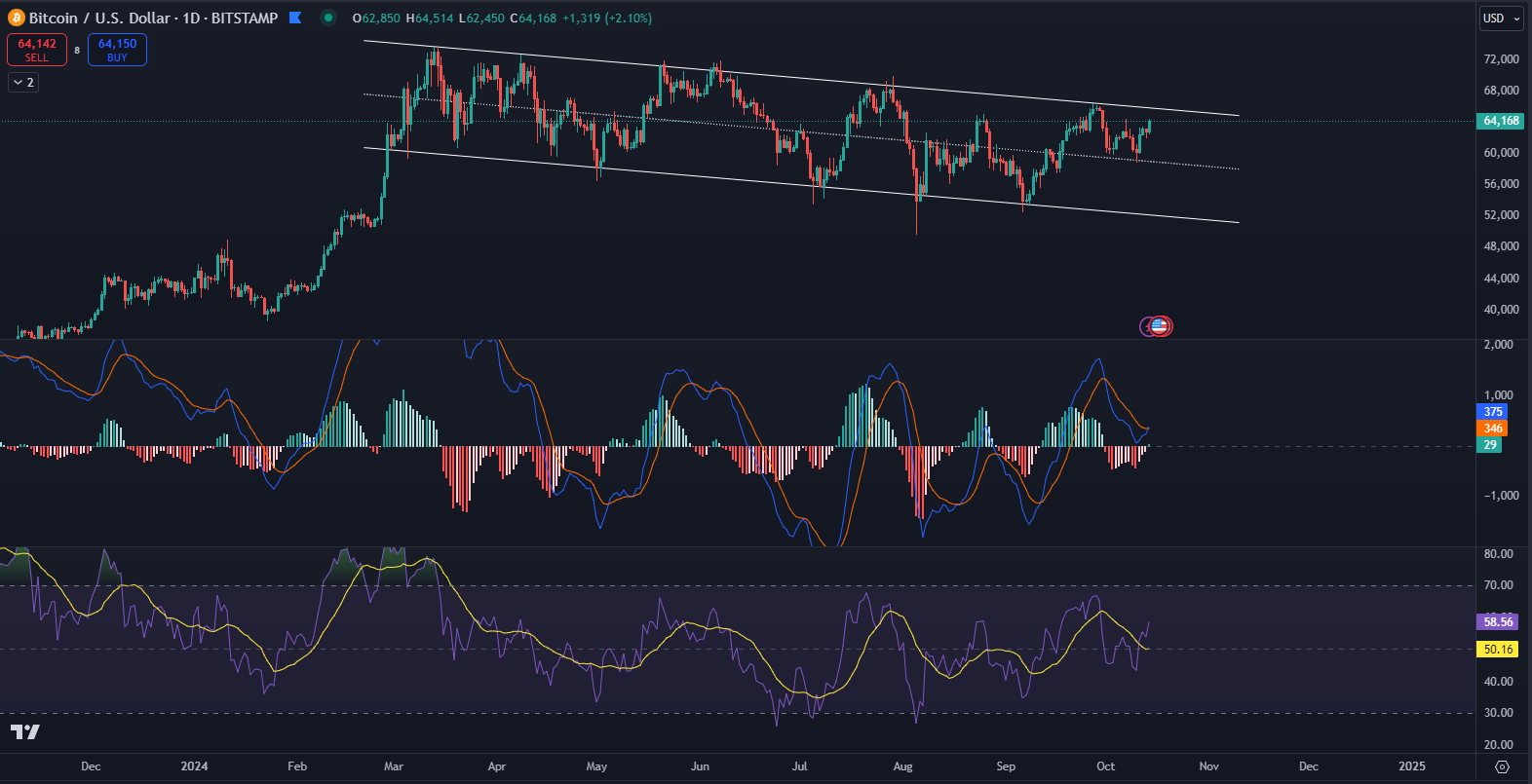 Rovnaký scenár signalizujú aj rôzne technické indikátory ako MACD alebo RSI. Oba tieto indikátory môžete vidieť na obrázku nižšie, pod cenovým grafom Bitcoinu. No pamätajte, že technické indikátory slúžia len ako podporný nástroj, keďže sú vypočítané z historických cien.