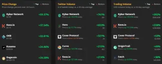 Niektoré altcoiny a DeFi tokeny zaznamenali veľmi zaujímavé zisky v momente ako dve najväčšie kryptomeny ETH a BTC dosiahli kľúčovú úroveň rezistencie. Najväčší zisk bol pri tom zachytený u DOGE, KNC a KAVA.