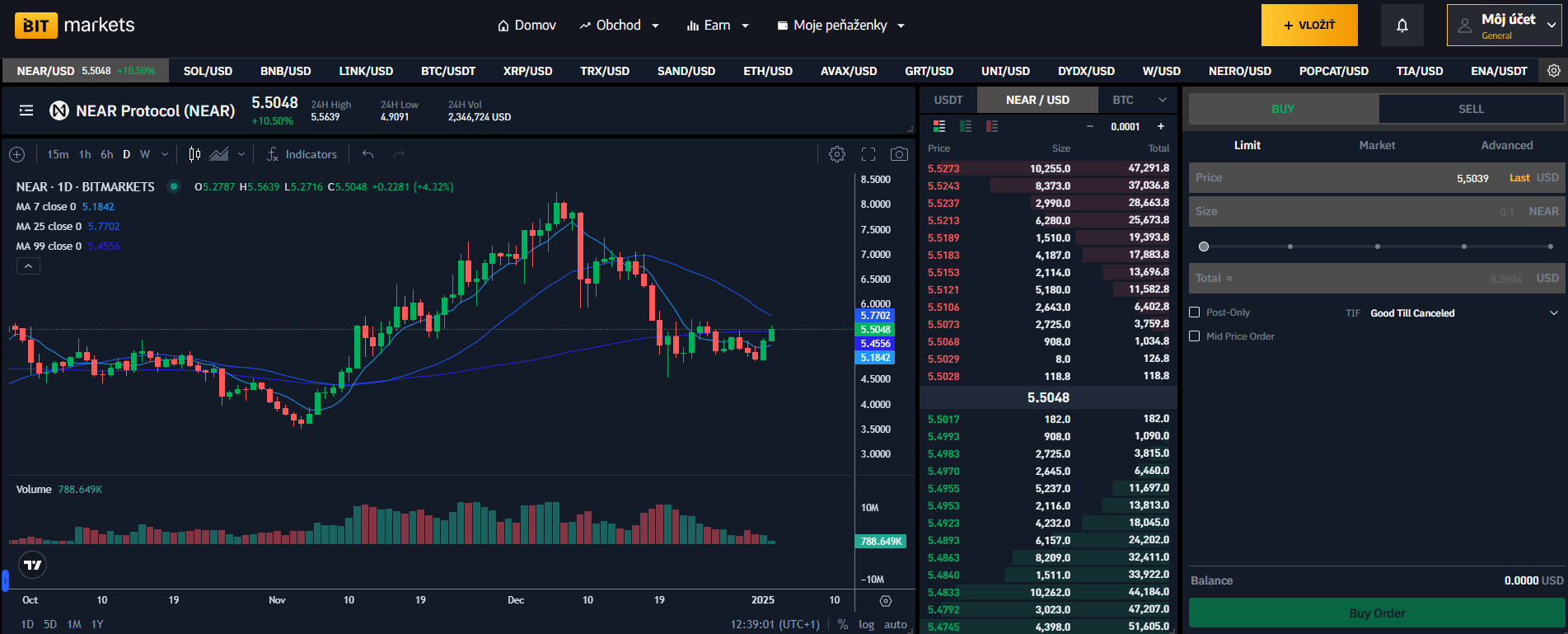 Na nákup kryptomeny NEAR vám odporúčame kryptomenovú burzu BITmarkets. Dole na obrázku môžete vidieť jednoduchý nákup.