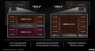 ZEN 3 architektúra však prichádza s novým rozdelením. V každom čiplete je teraz osem jadier, ktoré zdieľajú 32 MB spoločnej L3 cache pamäte.