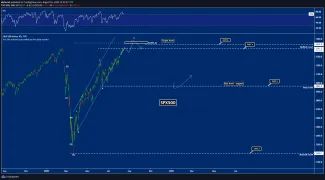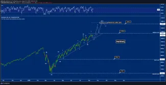 SPX ako najznámejší americký index sa nachádza len tesne pod ATH. Nachádza sa však v takom veľkom bullish trende, že je len otázkou času, kedy sa dostane na historicky najvyššie hodnoty. Podľa teórie Elliot wave očakávam rast až na 3 453 bodov. Na tejto hladine by mohlo prísť menšie zamietnutie a začiatok korekcie. Preto práve sem nastavujem target.