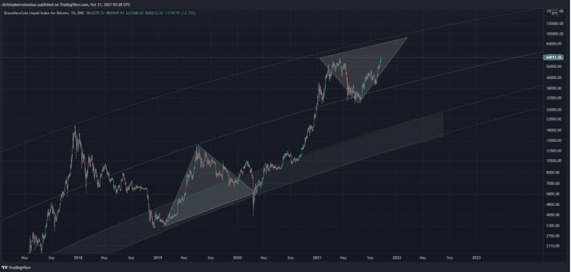 V októbri 2021, keď Bitcoin prudko prekonal cenovú hranicu 60 000 $, Dave the Wave hovoril, že BTC nakoniec vytvorí vzor s dvojitým vrcholom v blízkosti 65 000 $ alebo blízko tejto hodnoty.