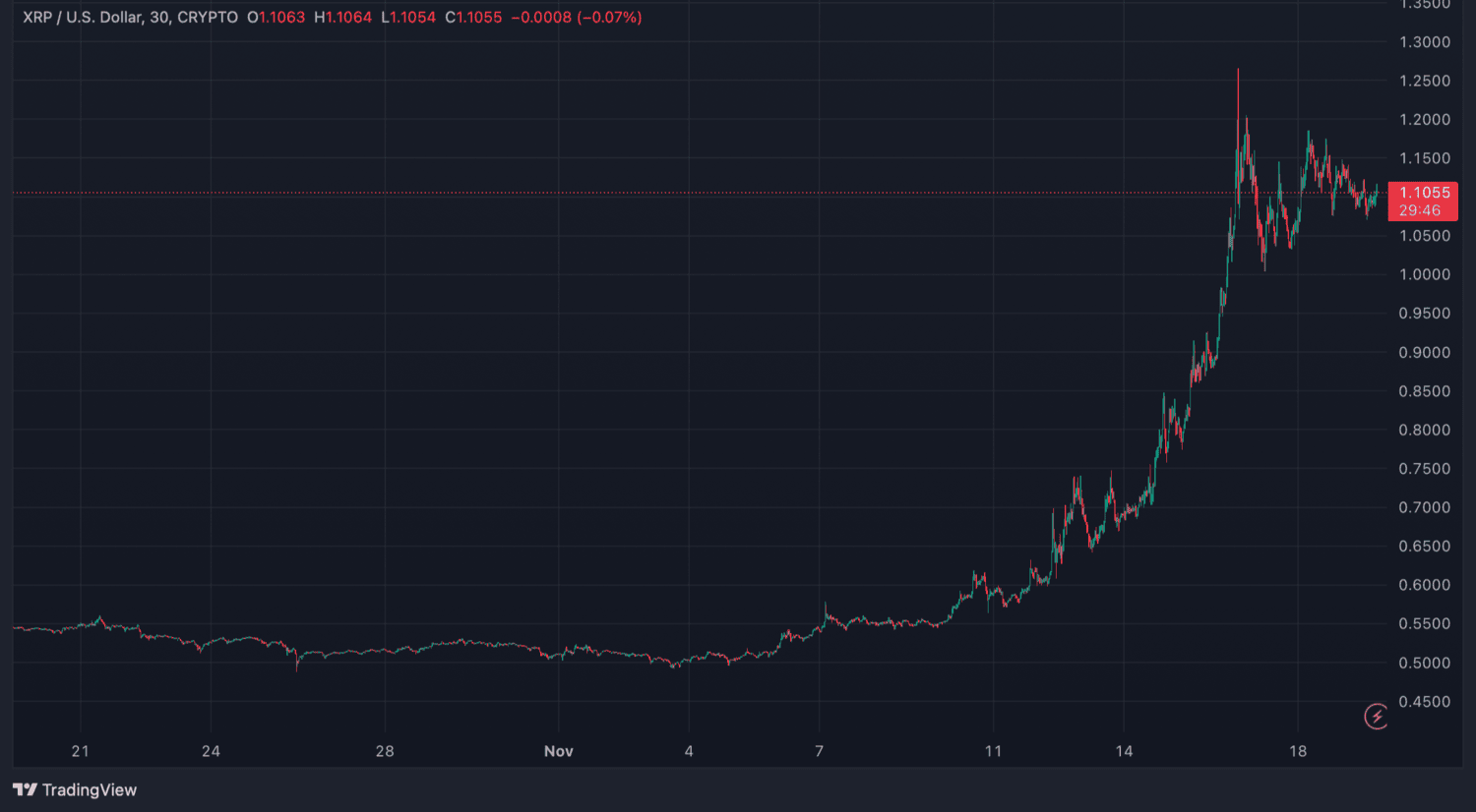 XRP zaznamenal v poslednom čase pozoruhodné zisky. Za posledný týždeň jeho cena vzrástla o 93,76 %. Za posledný mesiac stúpla o 108,77 % a za šesť mesiacov vzrástla o 112,03 %. Súčasné cenové rozpätie je medzi 0,66 a 1,36 dolára, čo ukazuje silnú vzostupnú dynamiku.