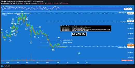 LTC naopak, aj naďalej pokračuje v pomerne tvrdom bearish trende. Po dokončení korekčnej 4. očakávam pokračovanie poklesu. Aby sme mohli špekulovať nad vstupom do obchodu, potrebujeme najprv vidieť tvorbu sideways štruktúry, po ktorej bude nasledovať bullish trend.