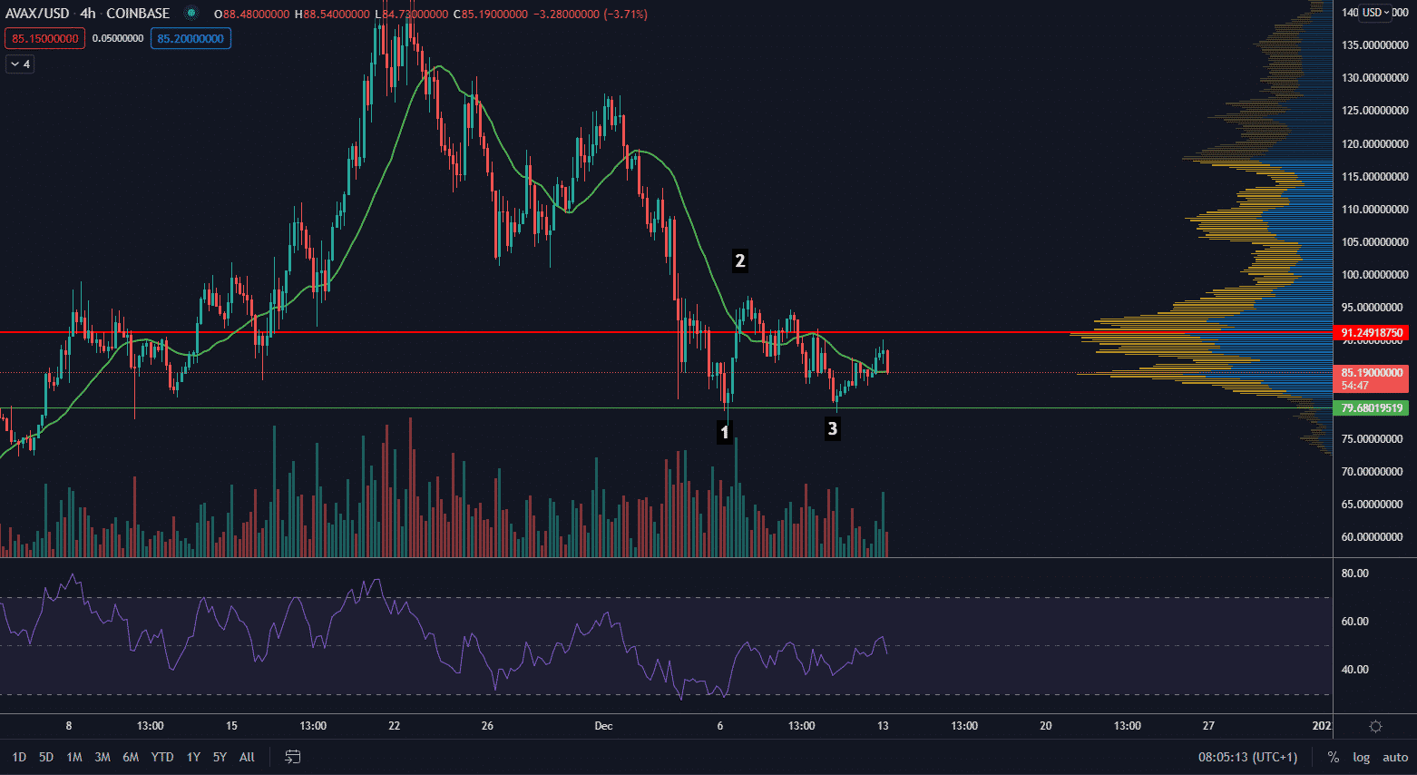 AVAX sa nachádza v rovnakej fáze ako Bitcoin a tiež formuje reverzný pattern, ktorý ešte nebol potvrdený, a tak musíme počkať na preraz posledného maxima. Cene sa to však nedarí a pravdepodobne vytvorila klesajúce maximum. Podstatné bude teraz sledovať, ako sa cena zachová pri kontakte so supportom.