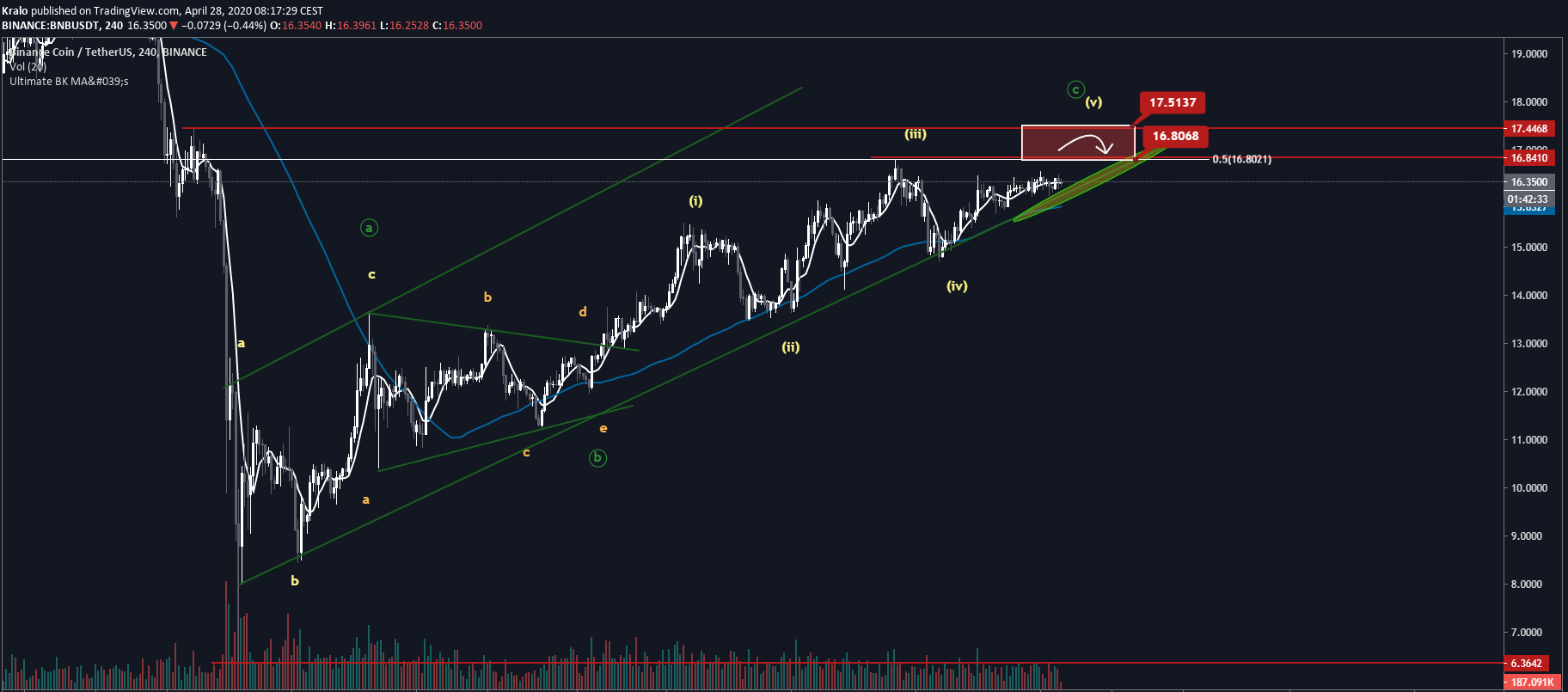 BNB však už má hlavnú „bullish” udalosť za sebou, a preto už nie je dôvod byť až tak veľmi optimistickí. Na kryptomenách to stále funguje tak, že ak má daná minca nejakú významnú udalosť, tak ju špekulanti nakúpia a tesne pred udalosťou predajú. Z tohto hľadiska už nie je veľa dôvodov, prečo by špekulanti nakupovali. Ja osobne však budem čakať na breakdown a potvrdenie poklesu. Ak však chce niekto shortovať už teraz, tak by som umiestnil stoploss nad 17,44 USD. Nad túto hladinu by sme sa nemali dostať a ak sa na ňu dostaneme, tak to bude vyzerať bullish. Pozor však na knôty.