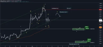Na 4H sme podľa mňa práve dokončili vlnu A a môžeme očakávať pull-back. Tento rast by však mal byť len vo vlne B a ja osobne nikdy neodporúčam túto vlnu longovať. Zamietnutie od topu bolo silné a máme hneď niekoľko indikácií, že sme naozaj dosiahli vrchol. Ako prvá indikácia je už spomínaný halving, ktorý je už za nami. Druhá indikácia je fundament.