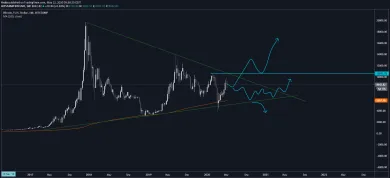 Ja ako najviac pravdepodobnú beriem možnosť, že pôjdeme až do samotného apexu trianglu. Rovnako očakávam kľudnejšie leto a triangel prerazíme nahor až na jeseň. Keďže však ide o krypto trh, a ten ide z extrému do extrému, tak musíme byť pripravení na všetko. Práve kryptomeny sú špecifické tým, že klasické scenáre nefungujú a trh si väčšinou volí extrém – či už rast alebo pokles.