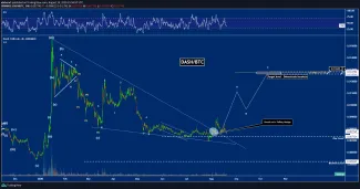 Na altcoine DASH sa nám tvorí kľúčový bullish pattern, falling wedge. Je pomerne vysoká pravdepodobnosť, že príde razantný pohyb. DASH okrem toho pomerne dlho klesá a je rovnako na mieste očakávať minimálne lokálny bullish pohyb, ktorý bude súčasťou korekcie.