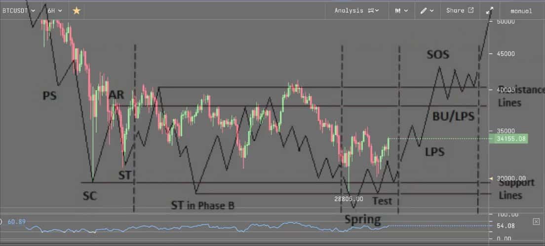 Možný bullish break out by pekne sedel do Wyckoff modelu, ktorý naznačuje, že počas tohto mesiaca by sa Bitcoin mal vracať na 40 000 USD a následne urobiť bullish break out. Potom by ďalší pohyb mal byť znovu bullish až na 50 000 USD.