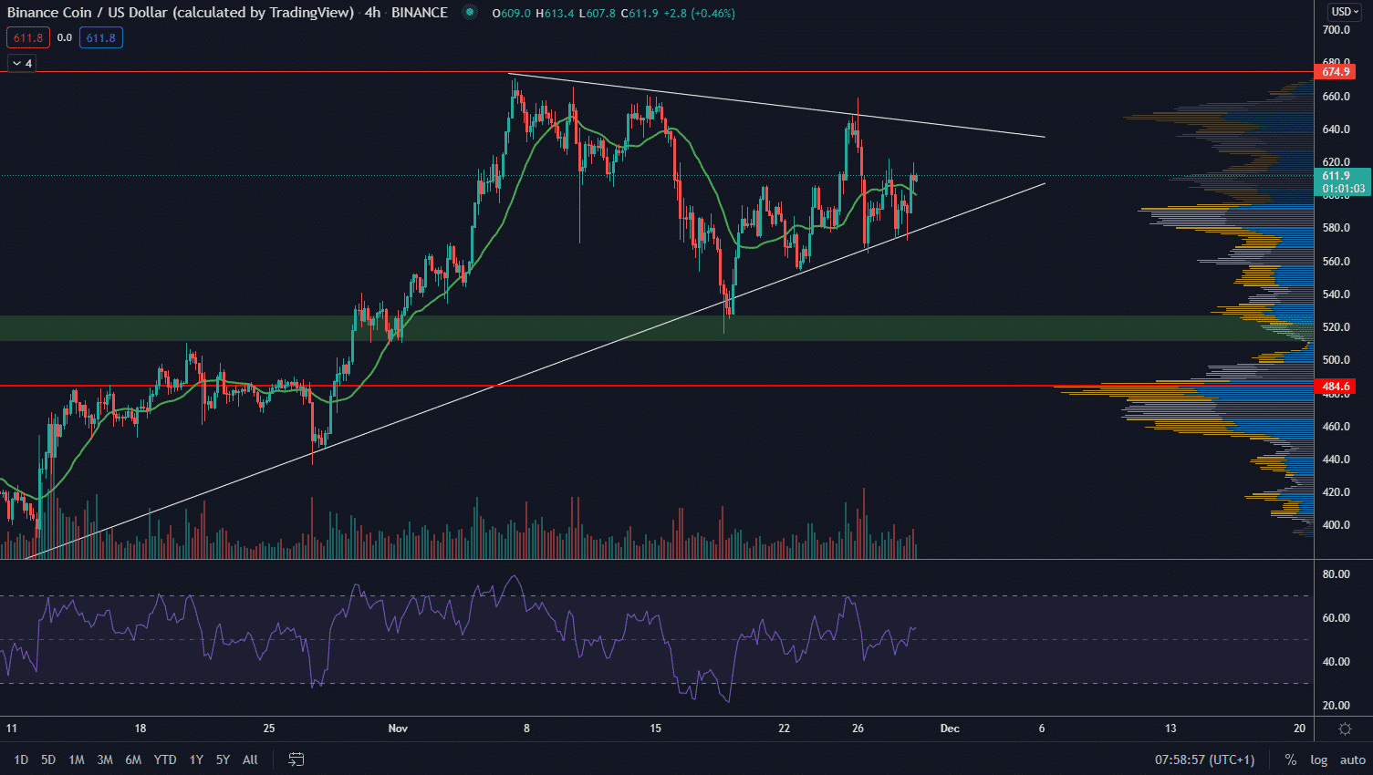 Ak by sa triangel uzavrel medvedím legom, neznamená to, že sa mení rastúci trend. Po korekčnom legu by pravdepodobne cena smerovala na náš target tak či tak. BNB však zatiaľ vyzerá bullish.