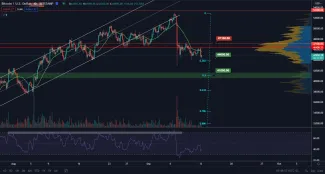 Bitcoin pokračuje v krátkodobej sideway štruktúre a pravdepodobne smeruje na nový support 44 000 $. Tento support je prvým targetom predchádzajúceho rastu z 29 000 $ na 53 000 $. Nachádza sa totižto na 38,2 % retracementu práve z tohto rastu. Navyše, posledné maximum vzniklo na point of control, čo taktiež potvrdzuje skôr medvedí scenár.