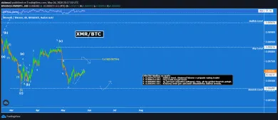 Graf cenového vývoja mince XMR sa veľmi podobá ETH. Taktiež sa po odraze od silného supportu mierne chytá a pokračuje naďalej v lokálnej ABC korekčnej štruktúre. Zatiaľ očakávam lokálny rast až na golden ratio a tam sa uvidí, či bude mať XMR ďalšiu silu na rast.