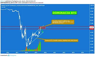 Dominancia BTC je aktuálne na veľmi silnej rezistencii, ktorá drží takmer 2 roky. Koncom roka 2017, kedy sa cena prvý krát odrazila od tejto rezistencie, sme mohli vidieť pohyby altcoinov o niekoľko stoviek percent v priebehu niekoľkých dní. Zároveň sa cena nachádza na úrovni hornej trendovej čiary, čakám pohyb dole, minimálne k 60 % dominancie BTC z aktuálnych 68 %.