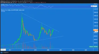 Bitcoin aj naďalej pokračuje v sideways štruktúre na úrovni okolo 9 500 USD. Je dôležité spomenúť, že čím dlhšie tu bude, o to väčší pohyb môžeme na celom markete očakávať. Keď sa pozrieme na väčší TF, môžeme si všimnúť, že sa BTC dostáva do pomerne zaujímavej situácie.