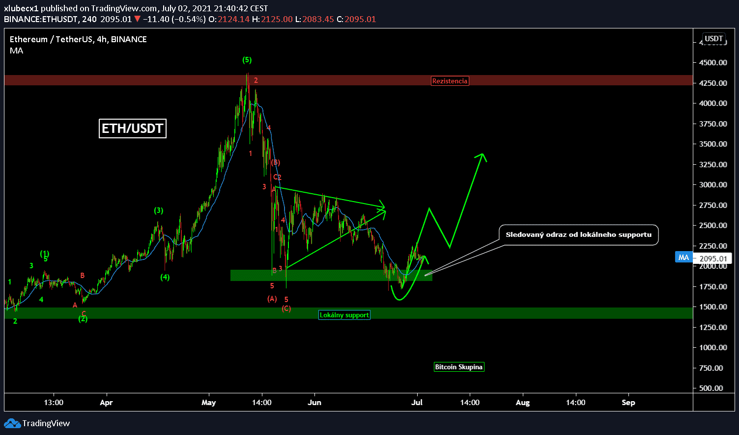 Support na 2 000 USD stále odoláva, a v prípade možného znovu otestovania tejto hladiny by aj mal odolať. Stále počítam s tým, že trh začína byť pripravený na otočenie trendu a návrat do rastového marketu. Inak povedané, nie sme ďaleko od cesty na nové ATH. Lokálna rezistencia, na ktorú by som si dával pozor, je na 3 000 USD. Je to taký prvý level, kde chceme vyberať targety.