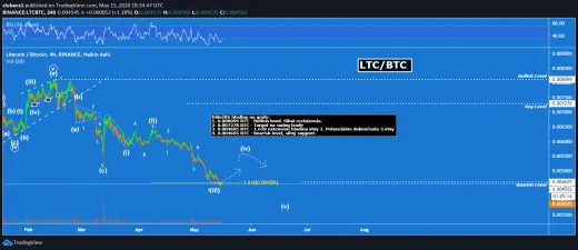 V prípade LTC to isté. Blíži sa do dôležitej buy zóny. Počas nasledujúcich dní nie je vylúčený lokálny rast, čím by sa vytvorila 4. vlna. Následne ale bude pokračovať diabolská divočina. Lepším scenárom by mohla byť tvorba dvojitého dna. Čiže odraz od 0,045 BTC.