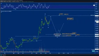 ETH naďalej pokračuje v korekcii. Nejde ale o žiadne prekvapenie, keďže všetky aktíva sa pohybujú v istých cykloch a cenových štruktúrach. Po každom raste prichádza korekcia, ktorá nám dáva možnosť nakúpiť za lacnejšiu cenu. Následne po odraze sa dá očakávať zhodnotenie. Keďže ako najdôležitejšia buy hladina v korekcii je golden ratio, tak práve tu mám nastavený order na nákup.