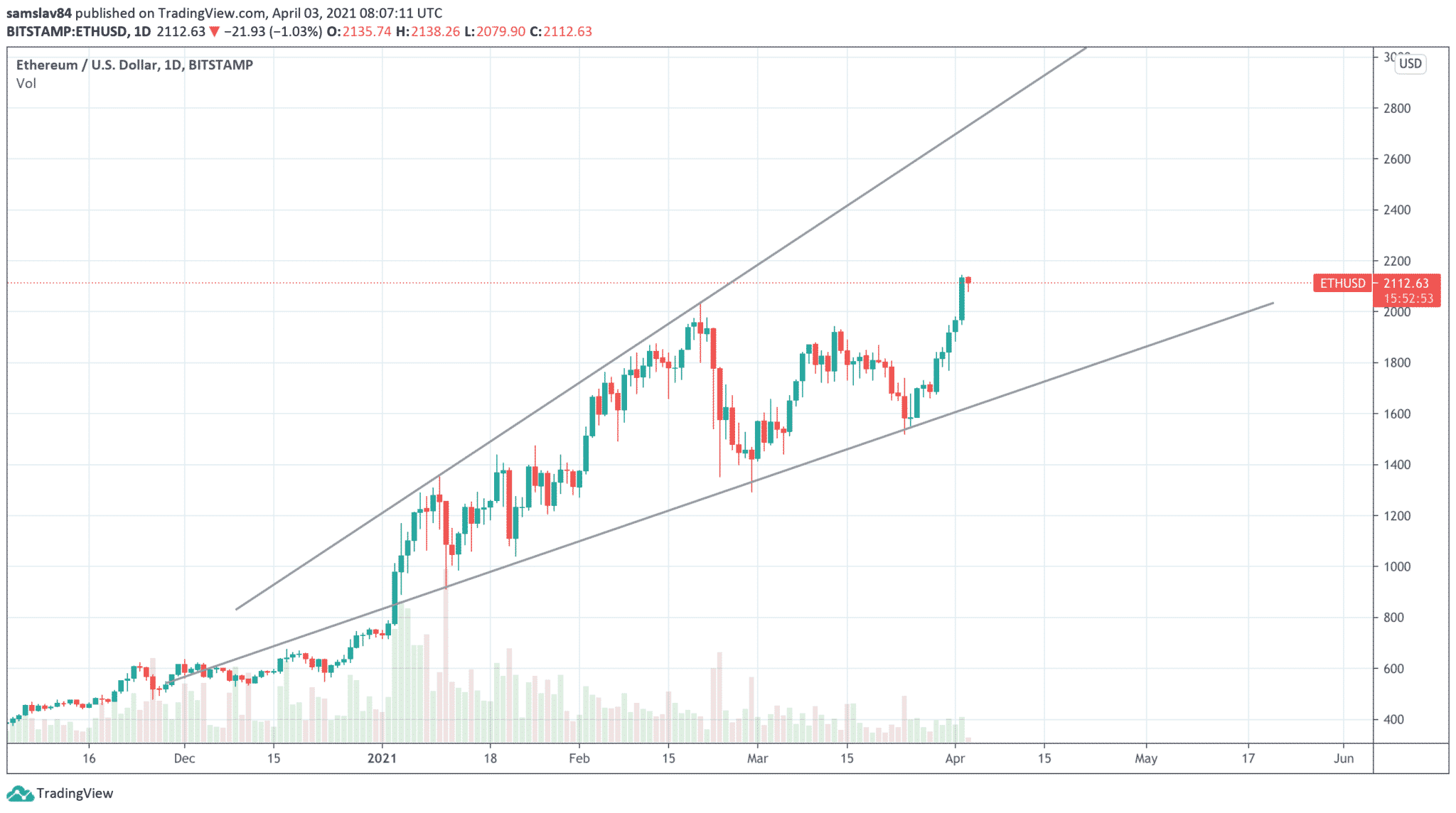 Ethereum má v apríli šancu dobyť 3000 dolárov