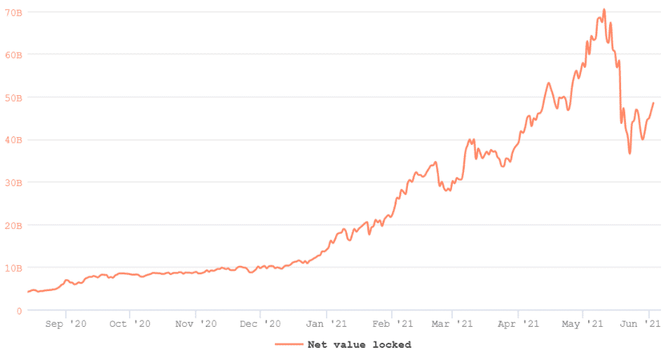 Ďalším pozitívnym faktorom je, že protokoly DeFi udržiavajú uzamknutú celkovú hodnotu 48 miliárd dolárov (TVL).