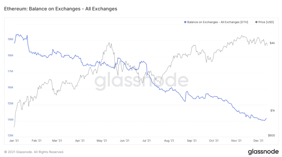 Ďalšie pozitívne signály pochádzajú z klesajúcich zostatkov Etherea na všetkých kryptoburzách. Počet mincí držaných burzami sa od 9. decembra zotavil z takmer 14 miliónov na 14,13 miliónov tokenov. To sa zhodovalo s poklesom ceny takmer o 10,50 %.