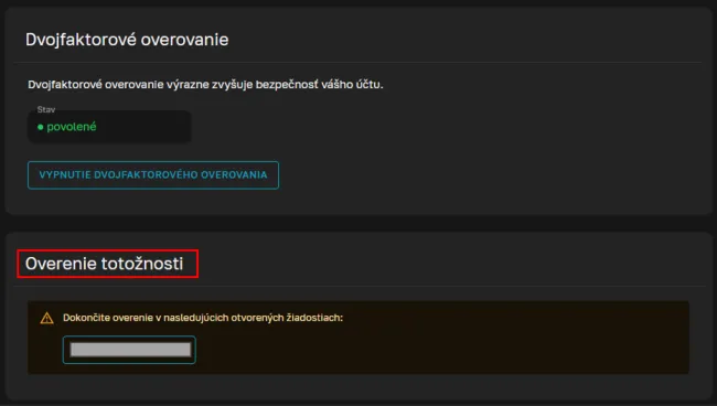- Overovacia platba: Pošlete overovaciu platbu v CZK alebo EUR z vášho bankového účtu. Účet musí byť vedený na vaše meno.