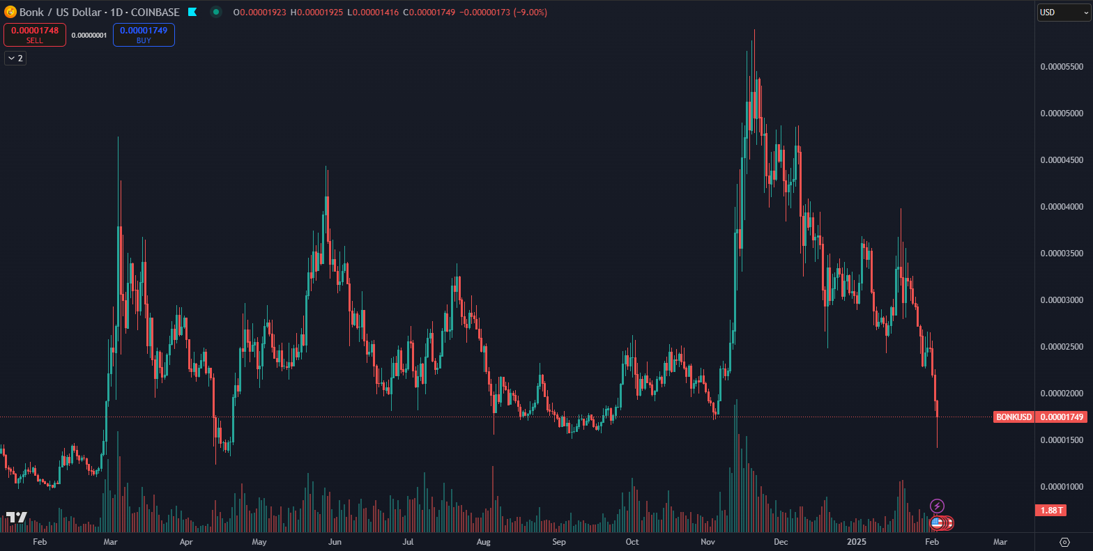 BONK však v posledných týždňoch zaznamenal určité poklesy. Nepodarilo sa mu udržať momentum, ktoré bolo poháňané rozsiahlym prijatím medzi používateľmi Solany. Meme kryptomena klesla o 16 % za jeden mesiac kvôli výzvam, ako je nedostatok významných vylepšení využiteľnosti.