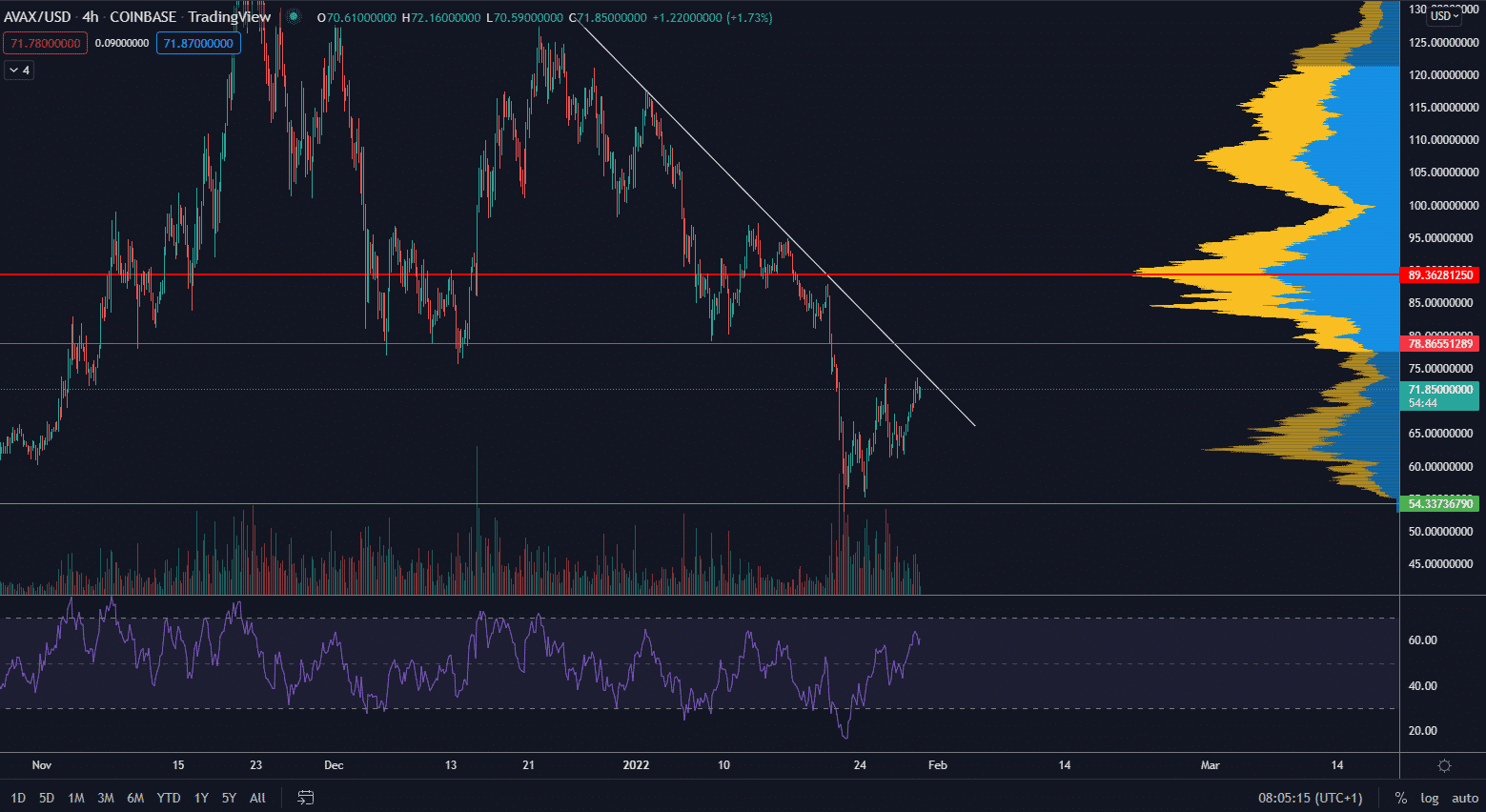 Avalanche sa so svojim tokenom dostal na úroveň kľúčovej rezistencie. Táto rezistencia pozostáva z maxím korekčnej štruktúry a taktiež sa tu vyskytuje predošlé krátkodobé maximum. Podarí sa cene prekonať túto hladinu, alebo bude pokračovať v poklese v rámci korekčnej štruktúry, ktorá trvá od ATH?