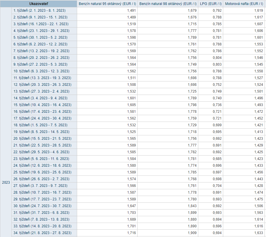 Koľko stojí benzín a nafta na Slovensku. Zdroj: Statdat