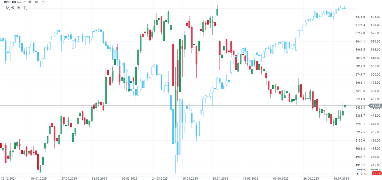 Začiatok roka bol pre akcie Berkshire viac než priaznivý. Výrazný výpredaj na trhu spôsobený neistotou v súvislosti s colnou politikou Donalda Trumpa viedol k odlevu kapitálu do bezpečnejších aktív. Investori často siahajú po dolári, zlate alebo práve po akciách Berkshire Hathaway, ktoré vďaka obrovským hotovostným rezervám a defenzívnemu charakteru ich portfólia pôsobia v turbulentných časoch ako bezpečný prístav.