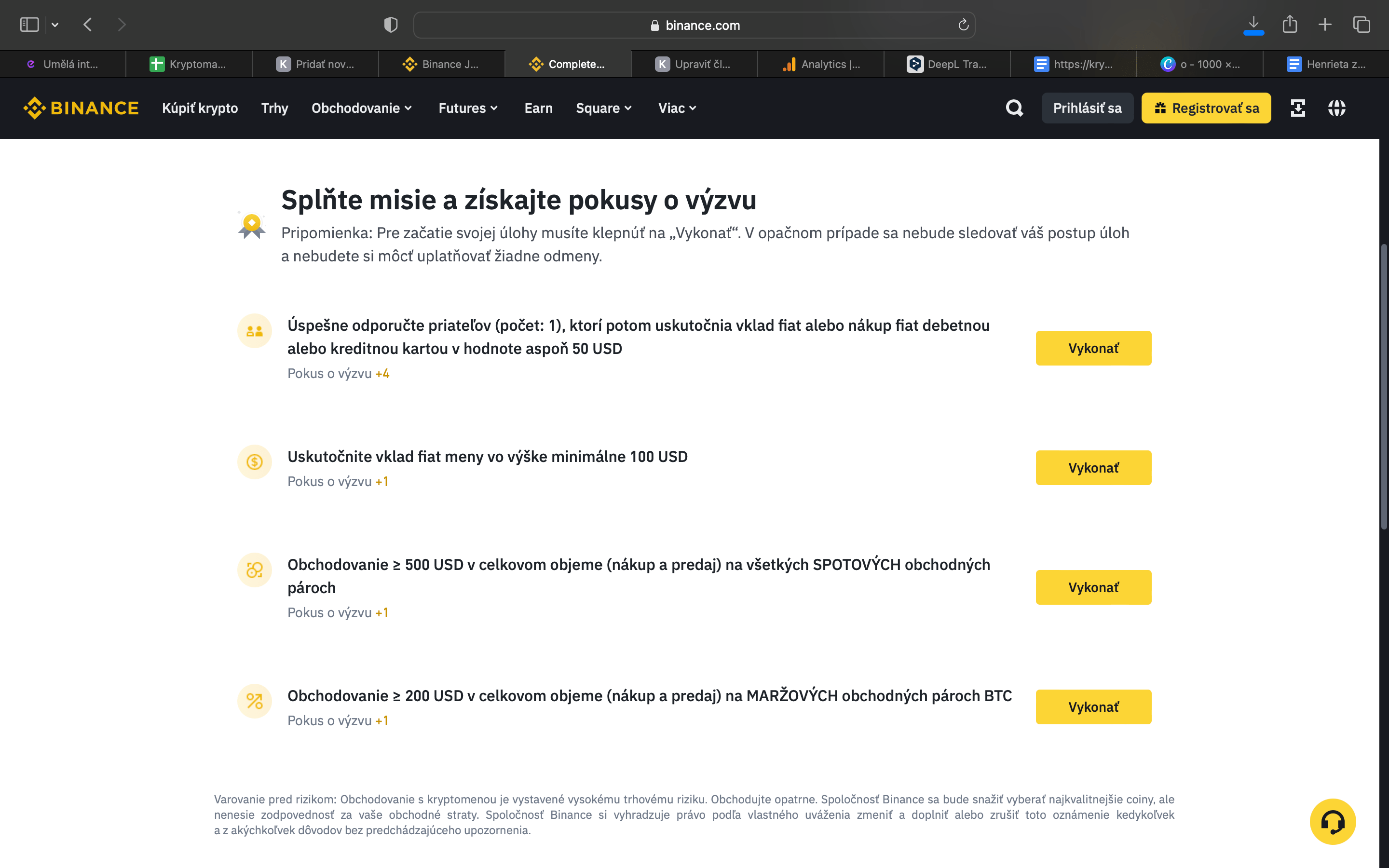 - Úspešne odporučte jednému priateľovi, aby si založil účet Binance, dokončil KYC a vložil aspoň ekvivalent 50 USDT cez Fiat Deposit alebo cez funkciu „Buy Crypto“, aby ste odomkli štyri pokusy o aktivitu.