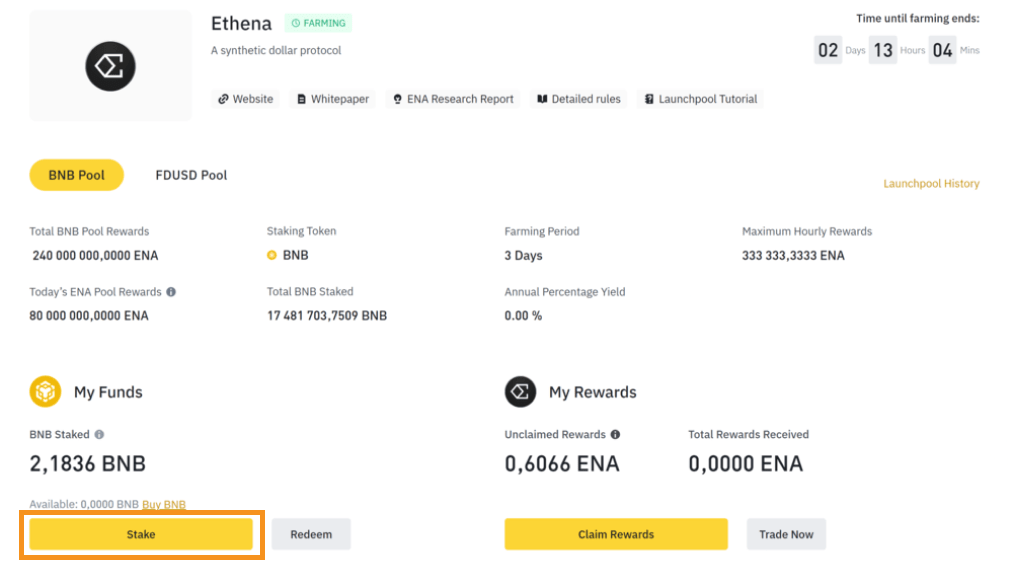 Odmena, ak držíš BNB: 240 000 000 ENA (80%)