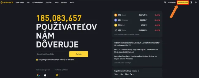 Teraz už môžeme prejsť na samotný postup, ako sa registrovať na burze Binance.