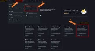 V tejto kapitole sa budeme zaoberať pasívnym investovaním na burze Binance. Predovšetkým hovoríme o obchodných botoch a copytradingu. Do tejto sekcie sa dostanete cez políčko Obchodovanie tak, ako to vidíte dole na obrázku.