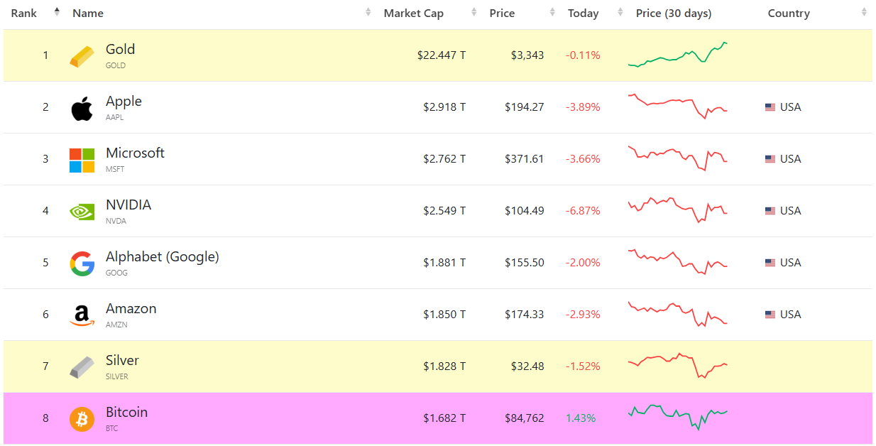 Porovnanie kapitalizácie zlata a Bitcoinu. Zdroj: companiesmarketcap.com